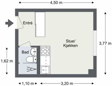 BRA-i: 17 kvm. Entré, bad og stue/kjøkken.