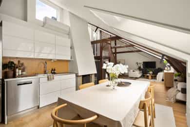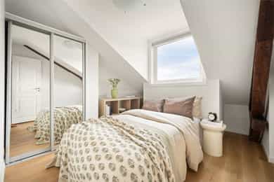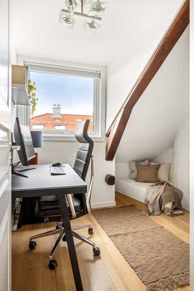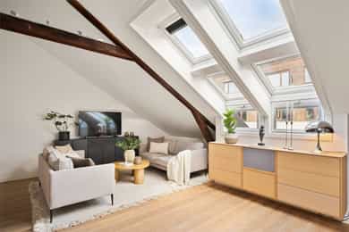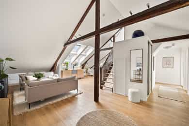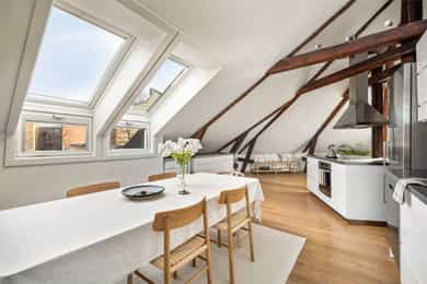 En lys, romslig og gjennomført 4-roms toppleilighet med solrik takterrasse og stilige detaljer. Leiligheten ligger i et skjermet og svært ettertraktet område på Uranienborg - rett bak slottet. Beliggenheten er svært sentral, med Bogstadveien og et bredt utvalg av servicetilbud bare noen hundre meter fra leiligheten, gangavstand til flere av byens fineste parker og god tilknytning til offentlig kommunikasjon.
