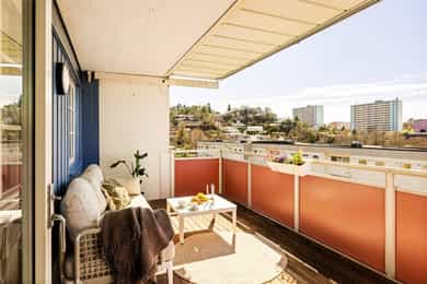 Flott 3-roms med 12m² vestvendt balkong! Nytt bad i 2023. Varmtvann/oppvarming mm. inkl. 1 min til buss