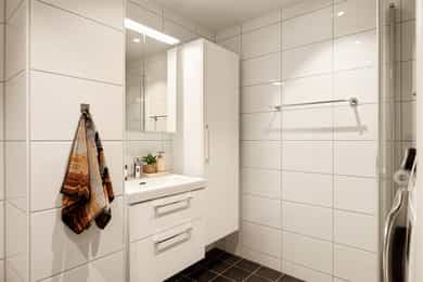 Badet ble renovert i 2023 i forbindelse med utskiftning av vann- og avløpsrør i Brl. Ferdigstilt i 2023. Overflatene i leilighetene er ellers nytt fra 2023-2025