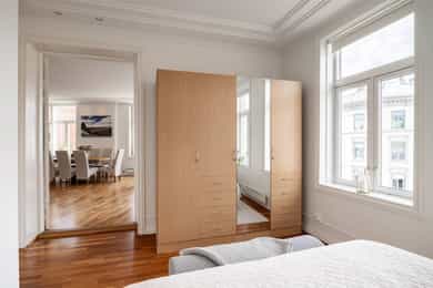 Svært sentral og attraktiv beliggenhet på Majorstuen. Fra leiligheten er det kun få skritt til Bogstadveien, en av hovedstadens mest ettertraktede handlegater, med et rikt utvalg av forretninger og servicetilbud. Samtidig ligger leiligheten i indre gårdsrom med lavere tempo. Her vil du trives! Beliggenheten er i seg selv så sentral at du har gangavstand til det meste av Oslos øvrige fasiliteter og spennende bydeler. Her er det meste tilgjengelig innen en liten tur til fots eller med sykkel. Restauranter, kafeer, nisjebutikker, forretninger og dagligvarehandel finnes rett utenfor døren. Gangavstand til hovedstadens mest anerkjente park, Frognerparken, med skulpturparken Vigelandsanlegget og Frognerbadet. Her finner du flotte skulpturer, frodig beplantning og grøntanlegg i særklasse. Stensparken ligger også i nærheten av eiligheten som er et ypperlige steder å nyte varme sommerdager. Langaardsparken er også en kort spasertur unna leiligheten. Majorstuen tilbyr også kino, lekeplasser, fotballbaner, skøytebane og tennisanlegg m.m. Majorstuen har gode velvære- og treningstilbud også innendørs med Sats ved Colosseum Park, Fageborg, Bislett, og Solli Plass. Fresh Fitness finner du i Bogstadveien og Barrys Bootcamp i Parkveien samt eksklusive Artesia i Majorstuveien. For den turglade er det kort avstand med offentlig kommunikasjon til Sognsvann og Frognerseteren med milevis av turløyper sommer som vinter. Majorstuen er et knutepunkt for offentlig kommunikasjon med både trikk, t-bane og buss, og med linjer i alle retninger kommer du deg raskt og effektivt rundt i byen. På Vinkelplassen arrangeres jevnlig det populære arrangementet Bondens Marked med ulike oster, økologisk kjøtt, fisk og vilt, bakervarer, honning, frukt, bær og grønnsaker m.m. Kjent for mange er også lørdagsmarkedet på Vestkanttorvet. Her har det vært antikk, brukt og klesmarked hver lørdag siden 1989. En populær samlings- og møteplass for Oslos beboere.