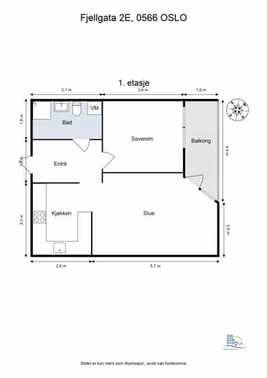 BRA-i: 52 kvm. Entré, bad, soverom, og stue/kjøkken