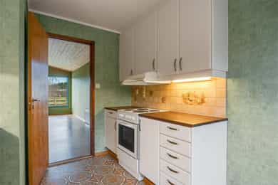 Tilstandsrapporten er en teknisk gjennomgang av boligen med oppdagede avvik. Vedlagt salgsoppgaven følger tilstandsrapporten og selgers egenerklæring. Disse må leses nøye av interessenter før bud inngis. Opplysninger gitt i tilstandsrapporten anses å være kjent for kjøper, og det kan derfor ikke reklameres på forhold som fremkommer av tilstandsrapporten. Forhold som har fått TG2 og TG3 må gjennomgås spesielt nøye, da disse indikerer avvik fra normal slitasje og/eller høy alder, med mulig behov for utbedring. Bygningsdeler som har fått TGIU er ikke undersøkt av takstmann. Beskrivelsen av boligen som følger er hentet fra tilstandsrapporten: Utvendig: Taktekking: Taktekkingen er av betongtakstein. Taket er besiktiget fra bakkenivå. Siden taket (takkonstruksjon, taktekking og skorstein) kun er observert fra bakkenivå, er vurderingen begrenset av dette. Det er ikke sikkerhetsmessig forsvarlig å bevege seg ut på taket eller observere fra stige. Selv om det ikke er avdekket skader under befaringen, betyr ikke dette at det ikke foreligger skader som en besiktigelse på taket kan avdekke. Vær oppmerksom på denne risikoen. En undersøkelse av taket kan utføres av en fagperson under tilstrekkelige sikkerhetsforhold. Nedløp og beslag: Nedløp, takfotbeslag og renner er i plast fra byggeår. Veggkonstruksjon: Veggene har bindingsverkskonstruksjon fra byggeår. Fasade har liggende og stående bordkledning. Takkonstruksjon/Loft: Takkonstruksjonen har W-takstoler i tre. På befaringsdag ble det observert fuktskjolder i undertak. Selger har hatt byggefirma til å tette lekkasje ved gjennomføring i tak. Vinduer: Bygningen har malte trevinduer med 2-lags glass. Dører: Boligen har oljede tredører. Dør til altan er oljet tredør med glassfelt. Balkonger, terrasser og rom under balkonger: Boligen har en altan mot vest, oppført i trekonstruksjon. Rekkverket er i tre og målt til 92 cm høyde. Altanen har et areal på 16 kvm. Innvendig: Etasjeskille/gulv mot grunn: Etasjeskiller er av trebjelkelag. Boligen har betonggulv mot grunnen og etasjeskiller er i tre. Høydeforskjellen ble målt i følgende rom: Kjeller: Soverom og gang. I gang ble det målt en høydeforskjell på 5 mm gjennom hele rommet og på soverom ble det målt en høydeforskjell på 7 mm gjennom hele rommet. Hovedetasje: Soverom og stue. I stue ble det målt en høydeforskjell på 10 mm gjennom hele rommet og på soverom ble det målt en høydeforskjell på 13 mm gjennom hele rommet. Høydeforskjellen er målt i noen rom og det utelukker ikke at det er skjevheter i andre rom. Kontrollen må sees på som en stikkprøvekontroll. Pipe og ildsted: Boligen har mursteinspipe som har keramisk røykløpsforing, åpen peis, vedovn og sotluke/feieluke. Eier har sendt rapport etter tilsyn fra feiervesenet. Det ble ikke avdekket avvik på tilsynet. Rom Under Terreng: Gulvet er av betong. Veggene har betong/mur. Hulltaking er ikke foretatt. Rommet har en konstruksjon som gjør hulltaking unødvendig. Bildene er tatt i rom hvor det er utvendig trapp ned til kjeller. Tomteforhold: Byggegrunn: Det er byggegrunn av fjell. Fuktsikring og drenering: Dreneringen er fra 1979. Grunnmur og fundamenter: Grunnmur er i Lecablokker. Fundament er synlig på vestsiden. Forstøtningsmurer: Forstøtningsmurer er av betongstein. Terrengforhold: Boligen ligger i skrånende terreng og terrenget faller noe inn mot grunnmur på østsiden. Utvendige vann- og avløpsledninger: Bygningen har utvendig avløpsrør og vannledning fra byggeår. Avløpsrør og vannrør er trolig i plast. Disse er tilkoblet det offentlige vann- og avløpsnettet. Vann- og avløpsrør er nedgravd i grunnen og dermed ikke inspisert. Tilstandsgrad settes på grunn av alder og eventuelle opplysninger gitt fra eier. Vann- og avløpsrør fungerte på befaringsdagen. GARASJE Boligen har en frittstående enkel garasje garasje på 38 kvm. Garasjen har ringmur i betong og støpt gulv. Vegg- og takkonstruksjon av tre. Utvendig har garasjen liggende kledning. Taket er tekket med betongtakstein. Renner, nedløp og beslag er i plast. Vinduene i garasje har karmer av tre og enkle glass. Garasjen har en vippeporter i tre. Foran en del av garasjen er det satt opp en presenning. Det er innlagt strøm i garasjen. Garasjen er ikke tilstandsvurdert. TG2 Taktekking Mer enn halvparten av forventet brukstid er passert på taktekkingen. Mer enn halvparten av forventet brukstid er passert på undertak. Konsekvens/tiltak: Overvåk tilstanden jevnlig. For å få tilstandsgrad 0 eller 1 må tekkingen skiftes ut, men tidspunktet for når dette er nødvendig er vanskelig å si noe om. Når taktekking og undertak begynner å bli gamle, øker risikoen for lekkasjer, noe som kan føre til omfattende og kostbare reparasjoner av underliggende konstruksjoner dersom en ikke foretar tiltak på konstruksjonene før dette oppstår. Tidspunkt for utskiftning av taktekking nærmer seg. Tidspunkt for utskiftning av undertak nærmer seg. Det anbefales å gjennomføre en grundigere undersøkelse av taket av fagperson under sikre forhold, for å avdekke eventuelle skjulte skader. Konsekvensen av manglende tiltak er økt risiko for skjulte skader, vannlekkasjer og følgeskader på underliggende konstruksjoner. Nedløp og beslag Det er påvist avvik i beslagløsninger. Mer enn halvparten av forventet brukstid er passert på renner/nedløp/beslag. Beslag rundt pipe har sprekker. Blyet ble fuget 22.12.2025 av taktekker som et midlertidig tiltak. Konsekvens/tiltak: Avvik i beslagløsninger må utbedres. Overvåk tilstanden jevnlig. For å få tilstandsgrad 0 eller 1 må beslag/renner/nedløp skiftes ut, men tidspunktet for når dette er nødvendig er vanskelig å si noe om. Renner, nedløp og beslag bør vurderes for utskifting, da mer enn halvparten av forventet brukstid er passert, noe som øker risikoen for lekkasjer og følgeskader på bygningen. Det ble 22.12.2025 montert undertakspapp fra ventilen og opp til mønet. Tiltake