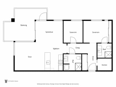 BRA-i: 83 kvm. Bad, gang, stue/kjøkken, soverom, soverom 2, bad/vaskerom, bod