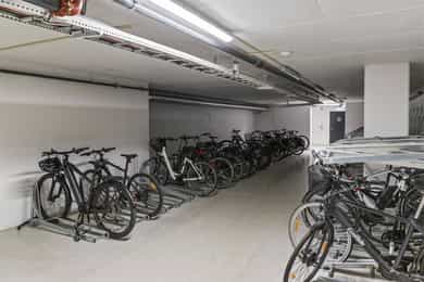 Det er garasjeplass tilknyttet leiligheten, med en månedlig kostnad på kr 200,- (inkludert i felleskostnadene). Garasjeplassene ligger i en egen anleggseiendom. Lading av elbil må skje etter egen avtale med sameiets leverandør, og det er strengt forbudt å lade via ordinære stikkontakter i garasjeanlegget. Gjesteparkering henvises til offentlige parkeringsplasser eller p-hus i området.
