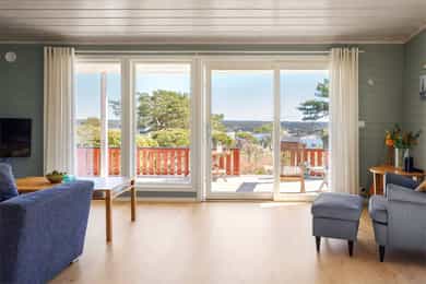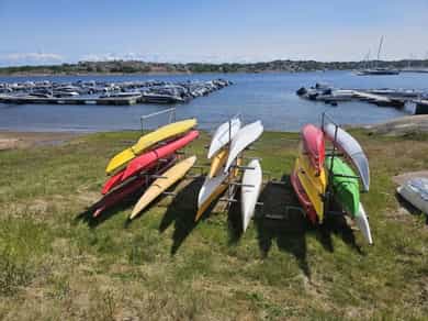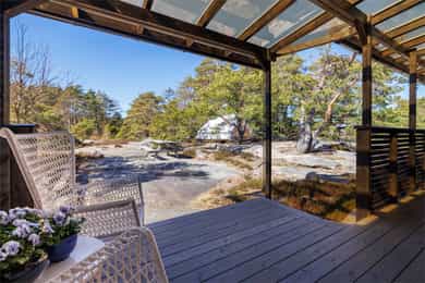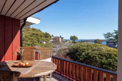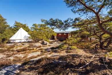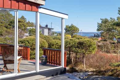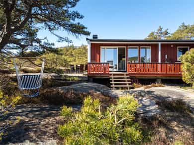Usjenert og idyllisk fritidsperle med ca. 10 minutters gange til sjøen. Hytta ligger skjermet i terrenget og byr på ro, privatliv og ekte hyttestemning. Flere solrike terrasser gir deg alltid en lun plass fra morgen til kveld. Nyt flott utsikt over Asmaløy og Kirkøy, helt til vindmøllene på svensk side. Det er en gjennomtenkt planløsning med romslige soverom, bad og vaskerom/bod. Totalt 11 sengeplasser, så her kan storfamilien samles. Hytta er stilfull, godt vedlikeholdt og vinterisolert med smartstyring av panelovner. Overbygd inngangsparti. Lyst og romslig allrom med stue og kjøkken i ett, med utsikt mot sjøen. Egen inngang fra veranda til stort, skjermet hovedsoverom. Glampingtelt medfølger. Parkering ca. 6 min unna. Båtplass (opptil 23 fot) og låsbart kajakkstativ.
