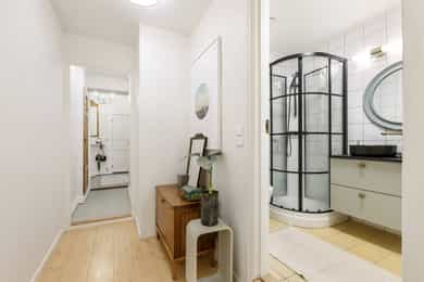 Ullevålsveien 49 ble oppført i 1895, under Oslos Murbyen-ekspansjon. Bygningen er utformet i historistisk og nyrenessansestil, og er et representativt verk av den tyskfødte arkitekten George Rudolf Haeslich, som hadde sin utdanning fra München, Berlin og senere Norge. Haeslich ga viktige bidrag til Oslos arkitektur på slutten av 1800-tallet, med blant annet Bogstadveien 62 (Majorstuen) og Første Metodistkirke på Olaf Ryes plass blant sine mest kjente arbeider. Ullevålsveien 49 var blant hans siste prosjekter – Haeslich døde i 1896, bare ett år etter at bygningen sto ferdig. Det finnes ingen kjente portretter av George Rudolf Haeslich bevart i dag. Et maleri av hans far, landskapsmaleren Johann Georg Haeslich, inngår imidlertid i samlingen til Hamburger Kunsthalle, og gir et visuelt innblikk i den kunstneriske arven som preget familien. Gjennom de siste 130 årene har Ullevålsveien 49 hatt en rekke kulturinteresserte beboere, blant dem medlemmer av den musikalsk begavede Bøhn-familien, kjent for å ha fostret fremtredende norske musikere, deriblant fiolinistene Gudbrand Bøhn og Ole Bøhn. Bygningen er i dag registrert hos Riksantikvaren, som anerkjenner dens arkitektoniske og historiske betydning som en del av Norges nasjonale register over kulturhistorisk verdifulle bygninger. Boligen ligger i et sentralt og populært boligområde på St. Hanshaugen med parken som nærmeste nabo. Parken ble opparbeidet i 1850 og var den første parken Oslo Kommune tok ansvar for. Parken tilbyr turmuligheter for store og små, sommerservering, scene hvor det avholdes konserter, andedam, mange benker å slappe av i, fjordutsikt og mye mer. Stensparken frister også på varme sommerdager. Dette er en perfekt beliggenhet for deg som ønsker å bo sentralt og samtidig vil ha kort vei til flotte grøntarealer. Fra St. Hanshaugen har man gangavstand til hovedstadens mest attraktive handlegater som Bogstadveien og Hegdehaugsveien, samt kort vei til Thereses gate på Bislett og Grünerløkka med sitt pulserende liv. Gangavstand til St. Hanshaugen Senter med bl.a. Rema 1000 og Mester Grønn. Apotek1, Kiwi og Coop Mega ligger også i umiddelbar nærhet til boligen. Kiellands Hus er like i nærheten med matvarebutikk, frisør, bokhandel, blomsterbutikk, kaféer, bensinstasjon, restauranter m.m. Det ligger flere sjarmerende nisjebutikker i området, blant annet Gutta på Haugen og den økologiske helsekostbutikken Røtter. Hyggelige kaféer og restauranter som Java, Smalhans, Roleur, Schrøder, Pascal, Kaffebrenneriet og Kolonialen, samt Åpent Bakeri. Ca. ti minutters gange til Grünerløkka med sitt pulserende liv, kaféer, butikker, utesteder og hyggelige Birkelunden. Også kort gange til Vulkan, med Mathallen, BAR Vulkan, konsertscene og restauranter. I gangavstand fra leiligheten ligger Telthusbakken, like nedenfor Gamle Aker kirke. Telthusbakken er preget av lav, gammel trehusbebyggelse, hovedsakelig fra første halvdel av 1800-tallet. St. Hanshaugen har et stort utvalg av treningsfasiliteter i nærområdet; bla. SATS Bislett/Ila/Ringnes Park, Bislet bad, Bislett stadion, FitnessXpress, mfl. Nærområdet byr også på fotballbane og lekeplasser. Ellers kan man benytte seg av parken på St. Hanshaugen, samt Stensparken og Idioten med sine fine tur- og rekreasjonsmuligheter. Man kan gå koselige turer langs Akerselva helt fra Maridalen til Bjørvika. For naturopplevelser i skog og mark er Maridalen, i sykkelavstand, et populært utfartssted hele året. Det er svært god offentlig kommunikasjon i området. Buss nr. 21, 26 og 37 er i umiddelbar nærhet. Disse tar deg enkelt og raskt til Oslo S, Solli plass, Aker Brygge, Nydalen, Majorstua, Rikshospitalet, Blindern m.m. Med bil fra St. Hanshaugen tar det ca. 3 min til Bogstadveien, 5 min til Oslo S, 8 min til Nydalen og 35 min til Oslo lufthavn. OsloMet på Bislett ligger kun ca. 10 minutters gange. Videre er det gode kollektivmuligheter til Universitetet i sentrum, Blindern og BI i Nydalen. Ullevål Sykehus ligger i gangavstand fra boligen.