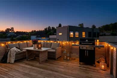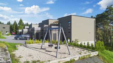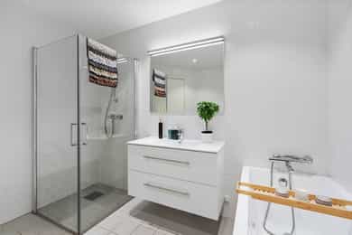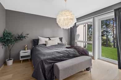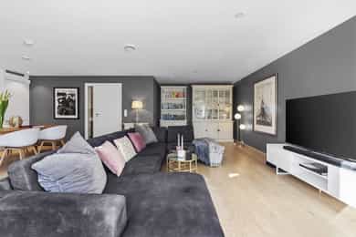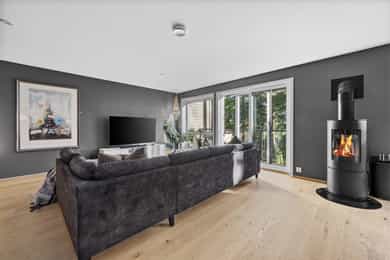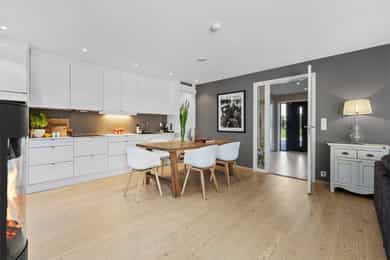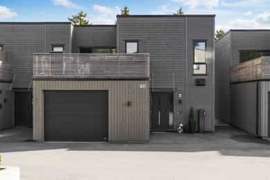 Nyere, meget tiltalende enebolig i rekke – 4 rom, 2 stuer, 2 bad, 2 walk in closets – solrikt og garasje med elbillader.