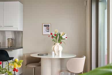 En innbydende leilighet med arealeffektiv planløsning og balkong. Boligen har tilgang til en felles takterrasse med sol hele dagen. Et ideelt hjem for både studenter og førstegangskjøpere.