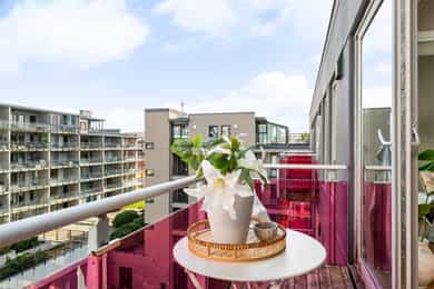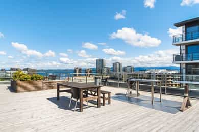 Moderne og sentral toppleilighet med østvendt balkong, felles takterrasse og mulighet for parkering. IN-lån
