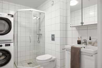 • Vannbåren varme i gulv på bad og radiator i stue/kjøkken, inkludert i felleskostnadene
