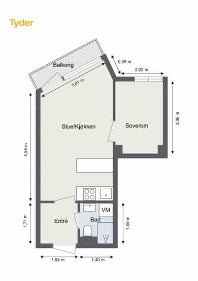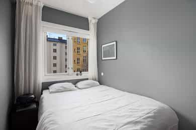3. etasje, 28 m²: Entré, stue/kjøkken, bad og soverom. I tillegg disponeres ekstern bod i kjeller på ca. 1m². Entré: Velkommen inn! I leiligheten blir du møtt av en innbydende entré med belysning i himling. I entréen har du mulighet for oppbevaring av sko og oppheng av yttertøy. Stue: Stue i åpen løsning med kjøkken. Innvendige gulv er belagt med laminat, og vegger er sparklet/pusset og malt. Himlingen er pusset og malt. Himlingshøyde i stue/kjøkken er målt til ca. 2,66 m. I stuen er det plass til både spisebord, sofagruppe og tilhørende møblement. Kjøkken: Kjøkkeninnredningen var ny i 2023 og består av glatte fronter, kjøkkenøy. Laminat benkeplate med nedfelt kum. Grohe blandebatteri med uttrekkbart Grohe armatur. Integrerte hvitevarer som platetopp med integrert ventilator, stekeovn og kjøleskap. Automatisk vannstopper og komfyrvakt. Kjøkkeninnredning fra IKEA. Soverom: Delikat og romslig soverom, vendt mot rolige omgivelser. Plass til dobbeltseng og ønsket møblement. Innvendige overflater følger leilighetens øvrige standard med laminat på gulv, sparklet og malte vegger og malt himling. Det er friskluftsventil på yttervegg i soverom. Bad/WC: Badet er rehabilitert i 2023, og det foreligger FDV-dokumentasjon/sluttrapport for arbeidet. Flislagte overflater med lekre italienske fliser fra Imola Ceramica samt øvrig baderomsmøblement fra Viking Bad. Dusjnisje med innfellbare dører i herdet glass. Toppmatet vaskemaskin medfølger. Balkong: Fra stue er det adkomst til en herlig balkong på ca. 2 m². Balkongen kan skilte med svært gode solforhold og herlig kveldssol frem til ca. 20.30 midtsommers. Plass til et lite cafésett med to stoler og et mindre bord.