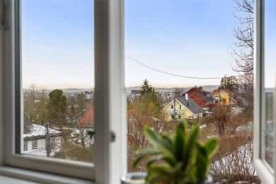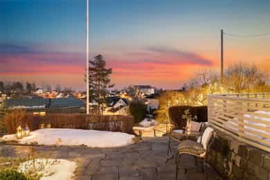 Sjarmerende sveitservilla med stor utsiktstomt på solrikt høydedrag | Dobbeltgarasje | Uthus | Sentralt på Bekkestua