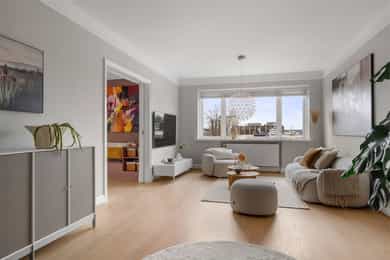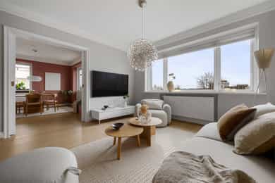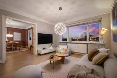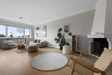 Lys & lekker 4-roms endeleilighet med attraktiv beliggenhet | 2 solrike balkonger | Garasje | Peis | Fantastisk utsikt