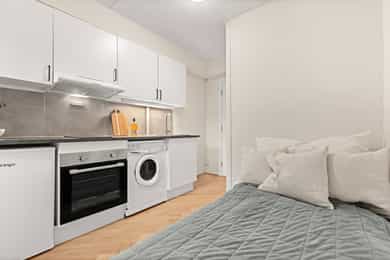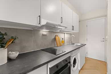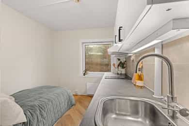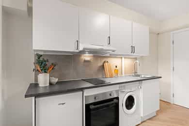 Lys 1-roms hybelleilighet med sentral beliggenhet i Kværnerbyen. Arealeffektivt. Utleie tillatt. Førstegangskjøp!