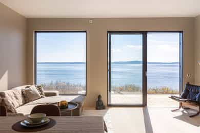 Svært innbydende fristedsperle i front, vidstrakt sjøutsikt og fantastisk strandlinje rett utenfor. 2 bad. Garasje m/el.