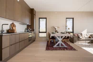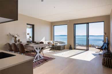 Meget tiltalende og påkostet eierseksjon med attraktiv beliggenhet i et fredelig paradis i vannkanten. Fra takhøye vinduer er det praktfull utsikt over Oslofjorden. Lys stue med lekker ènstavs parkett på gulv. Delikat kjøkken i åpenløsning med plass til spisegruppe. Videre har boligen to soverom, to bad og et teknisk rom. Generøs takhøyde i stue og soverom på 2,77 m. Boligen tilhører prosjektet Hurum Brygge, som etter planen skal bli en ny kystby for boliger og fritidsboliger. Avstanden til lokalsenteret Tofte er 1,5 km. Her finnes skole, barnehage, butikker og andre service- og tjenestetilbud. Videre er det under 1 times kjøring fra Oslo sentrum Høydepunkter: Bolig fra 2023 med høy standard og påkostede materialer Vannbåren varme Kjøkken med integrerte hvitevarer Terrasse på 24 kvm