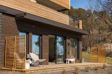 Det er i forbindelse med salget utarbeidet en tilstandsrapport fra bygningssakkyndig. Tilstandsrapporten er en teknisk gjennomgang av boligen med oppdagede avvik. Vedlagt salgsoppgaven følger tilstandsrapporten og selgers egenerklæring. Disse må leses nøye av interessenter før bud inngis. Opplysninger gitt i tilstandsrapporten anses å være kjent for kjøper, og det kan derfor ikke reklameres på forhold som fremkommer av tilstandsrapporten. Forhold som har fått TG2 og TG3 må gjennomgås spesielt nøye, da disse indikerer avvik fra normal slitasje og/eller høy alder, med mulig behov for utbedring. Bygningsdeler som har fått TGIU er ikke undersøkt av takstmann. Beskrivelsen av boligen som følger er hentet fra tilstandsrapporten: Boligbygg oppført i 2023 med 5 etasjer med u. etasje. Støpt betonggulv på antatt fast grunn. Grunnmur i betong. Yttervegger i bærende betong/murkonstruksjon. Fasader er forblendet med liggende og stående panel. Kompakt tak, Isolasjon skråskjæres med fall til sluk og tekkes med pappmembran. Vinduer fra byggeår med 2 lags isolerglass fra 2023 Heltmalt inngangsdør med brannklasse B35 og dB38 fra 2023. Boligen ble ferdigstilt i 2023, med standard innredninger og utstyr. Med en terrasse på ca. 24 kvm, utsikt rett ut mot sjøen. Boligen fremstår med minimale bruksslitasje. Bygningsdeler som har fått TG2: Overflater gulv Merknader: Fall mot sluk tilfredsstiller ikke dagens krav, som er min 25mm. Selv fall mot sluk ikke tilfredsstiller kravene, så vil ved lekkasjevann fortsatt føre til sluk. Påvist bom/hulrom under fliser. Membran, tettesjikt og sluk Merknader: Ikke fremlagt dokumentasjon, kontakt styre for dokumentasjon. Kjøkken Påvist knirk i gulv, takstmann anser som normalt. Omfanget er ikke av vesentlig karakter og påvirker derfor ikke takstmanns vurdering av tilstandsgrad. Termometer er ikke montert iht. bruksanvisningen, og er ikke fagmessig utført. Andre rom Merknader: Påvist: Avvik i skjøtene på parkettgulvet i entre/gang. Tørke sprekker i vegger og himling, takstmann anser som normalt. Vinduer og ytterdører Merknader: Plassering av terrassedør og skyvvedør, vurderes ikke sikre mot vanninntrengning i konstruksjonen. Da terrassebord ligge jevnt med terskel. Balkonger, verandaer og lignende Merknader: Påvist: Flass på veggpanel. Takstmann anser som normalt, da det er vær utsatt. Grønske på overflaten. Takstmann anser som normalt, da det er vær utsatt. Terrassebord ligger tett opp mot veggpanel. WC og innvendige vann- og avløpsrør Merknader: Vannanlegget er bare visuelt undersøkt. For nærmere kontroll/sjekk må det utføres av fagpersonell. Ikke fremlagt dokumentasjon på innebygget sisterne for WC. Ikke spalte på innebygget sisterne for wc. (Muligens innbygget sisterne har avrennings pose som fører direkte ut til skål) Bygningsdeler som har fått TG3: Membran, tettesjiktet og sluk Merknader: Påvist: Feil på utførelse, manglende materialvalg rundt avløpsrør til vasken. Her under manglende rørmannsjett/tetting rundt avløpsrør som går inn i veggen. Det anbefales å etablere korrekt tetting rundt avløpsrøret der det går inn i veggen, eksempelvis ved montering av rørmansjett eller annen egnet tettemetode tilpasset våtrom/kjøkken. Arbeidet bør utføres slik at gjennomføringen blir tilstrekkelig tettet mot fukt. Risiko og konsekvens: Manglende tetting rundt rørgjennomføring kan føre til at fukt eller lekkasjevann trenger inn i veggkonstruksjonen. Over tid kan dette medføre fuktskader, muggdannelse og skade på omkringliggende bygningsmaterialer. Utbedringskostnaden vurderes som lav, jf. rapportens sjablonmessige kostnadsklasser.