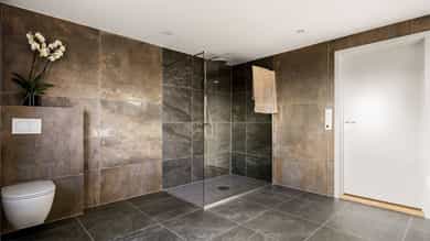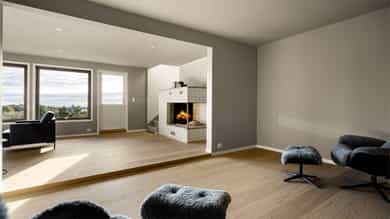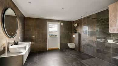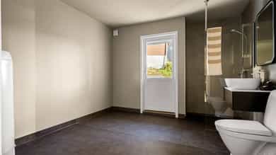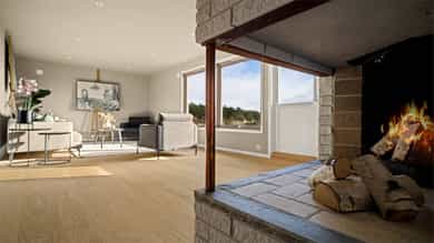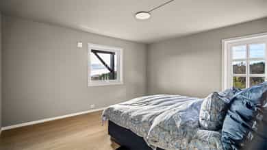 1. etasje Entré Velkommen til en lys og innbydende entré med god plass til klær og sko. Her får du et godt førsteinntrykk av boligen – åpent, ryddig og trivelig. Stue og kjøkken Lys og luftig stue med åpen løsning mot kjøkkenet skaper en hyggelig atmosfære og god romfølelse. Store vinduer og terrassedører slipper inn rikelig med naturlig lys og rammer inn den flotte utsikten. Kjøkkenet har moderne, slette fronter og laminat benkeplate, samt en praktisk kjøkkenøy med ekstra oppbevaring og sitteplasser. Integrerte hvitevarer som kjøleskap, komfyr, platetopp, oppvaskmaskin og ventilator gjør det både stilrent og funksjonelt. Det er god plass til både spisegruppe, sofakrok og TV-møbler, og fra stuen har du direkte utgang til en solrik uteplass med nydelig utsikt. Soverom Etasjen byr på to gode soverom, hvor hovedsoverommet har utgang til uteplassen. Begge rommene har plass til seng og oppbevaring – ideelt som hovedsoverom, barnerom eller kontor. Bad Stort og delikat bad med fliser fra gulv til tak. Lekker innredning med doble servanter, vegghengt toalett og dusjvegger. Fra badet er det også utgang til uteplassen – en praktisk og litt luksuriøs detalj. Underetasje Stue Koselig peisestue med plass til både sofagruppe og TV-møbler. Peisen skaper en lun og avslappende stemning – perfekt for rolige kvelder og hygge. Bad/vaskerom Lyst og funksjonelt rom med våtromsplater på vegger og belegg på gulv. Innredning med servant, toalett, dusjvegger og opplegg for vaskemaskin. Gang Praktisk gang som binder etasjen sammen på en god måte. Soverom Etasjen har to soverom. Hovedsoverommet har god plass til seng og garderobe, samt direkte utgang til uteplassen. Det andre rommet passer utmerket som barnerom, gjesterom eller kontor. Boder Hele tre boder gir rikelig med lagringsplass – praktisk og lettvint i hverdagen.