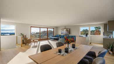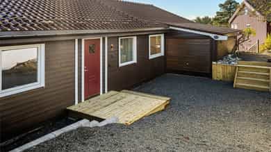Velkommen til Gabriel Scotts vei 31 – en moderne og oppgradert enebolig i et populært og barnevennlig boligfelt på Færvik. Her får du en sjelden kombinasjon av høy standard, praktiske løsninger og en utsikt som tar pusten fra de fleste – Fra kjøkkenøya og stuen har du panorama mot Merdø, Torungene og helt ut mot horisonten. Boligen er gjennomgående oppgradert innvendig . Det stilrene kjøkkenet er nytt og har åpen løsning mot stue med store vindusflater og utsikt over skjærgården. I hovedetasjen finner du et romslig nytt bad med moderne fliser og innredning. Underetasjen byr på en stor kjellerstue med plass til TV-stue eller bibliotek, samt et nytt og praktisk vaskerom med dusj og wc.
