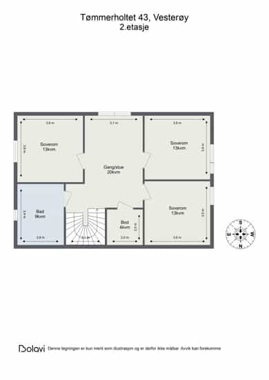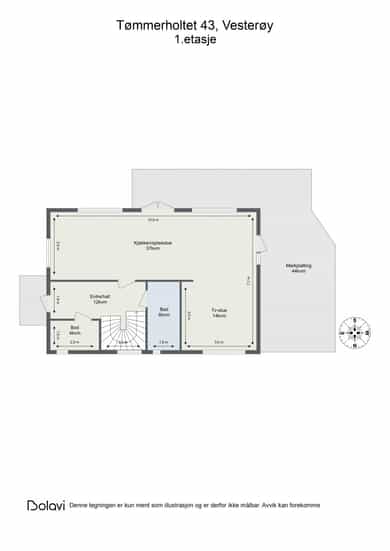 Det kan være avvik fra dagens rombruk/rombenevnelser sammenlignet med det som er byggemeldt/godkjent. Det er fremlagte byggemeldte tegninger for fasader, datert 03.04.2017. Plantegninger for etasjer er ikke fremlagt, det er da ukjent om dagens bruk samsvarer med hva som ble byggemeldt. Det foreligger også tegninger for garasje, denne er ikke oppført på eiendommen.