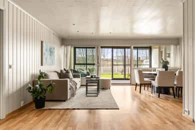 Innbydende og attraktiv 3-roms med fin intern beliggenhet! Solrik terrasse og hage - Bad & vaskerom fra 2022 - Garasje