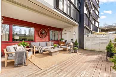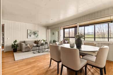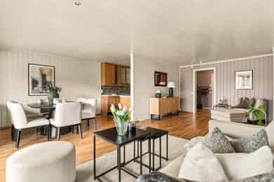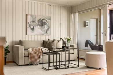 Lys og trivelig 3-roms leilighet på Skjetten med god planløsning og hyggelig uteplass. Boligen fremstår som innbydende med en åpen stue- og kjøkkenløsning som gir en luftig romfølelse og gode sosiale soner. Store vindusflater slipper inn rikelig med naturlig lys, og fra stuen er det utgang til en solrik uteplass som fungerer som en naturlig forlengelse av oppholdsrommet. Leiligheten har to gode soverom med fleksible bruksmuligheter, samt et pent og funksjonelt bad. Her bor du i rolige og grønne omgivelser, med nærhet til dagligvare, kollektivtransport og flotte turmuligheter. - Usjenert og solrik uteplass - To romslige og fleksible soverom - Funksjonelt kjøkken med gode arbeidsflater - Lekkert baderom fra 2022 - Attraktiv og rolig beliggenhet - Garasjeplass