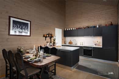 Entré, Kjøkken, Stue, Tre soverom, To bad, Badstue, Loft, Bod