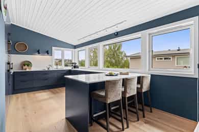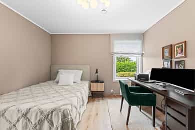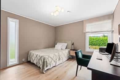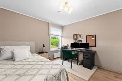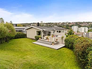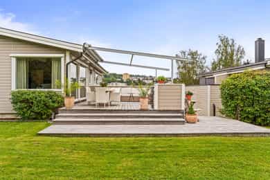 Flott enebolig i blindgate, betydelig oppusset 2019-2023. Solrik hage, utsikt, garasje, peis og mulighet for 4 soverom.