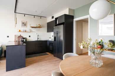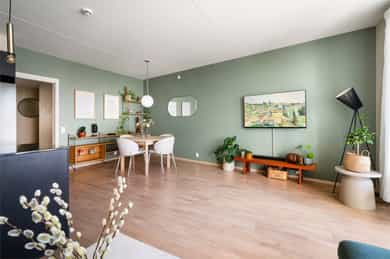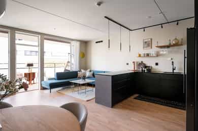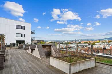 Kværnerbyen er et moderne og populært boligområde med en unik kombinasjon av sentral beliggenhet, urbane kvaliteter og grønne omgivelser. Her bor du i umiddelbar nærhet til Gamlebyen, Grønland og Bjørvika, hvor både Operaen, Munchmuseet og Oslos nye finansdistrikt befinner seg. Sørenga med sjøbad og populære serveringssteder er kun en kort spasertur unna. Området har svært gode kollektivforbindelser, med gangavstand til bussholdeplasser for linje 34, 70 og 74. Buss 54 fra busstoppet Kværner går til sentrum hvert sjette minutt i rushtiden, og Oslo S er kun fem minutter unna med buss eller sykkel. I nærområdet finner du alt du trenger i hverdagen: dagligvarer fra Kiwi, en søndagsåpen nærbutikk og Coop Extra. Kværnerbyen byr også på frisør, neglesalong, apotek, bakeri og treningssenter - alt samlet i ditt nærmiljø. Du finner flere hyggelige spisesteder rett utenfor døren, som den populære nabolagsrestauranten Kraft, ZZ pizza, Fuglen kaffebar og Smia galleri. Like i nærheten ligger også Kruttverket, med badstue fra Oslo Badstuforening, bar og jevnlige arrangementer. Boligområdet er pent opparbeidet med vannspeil, grønne fellesarealer og frodige bakgårder med sitteplasser. Kværnerbyen grenser til flotte tur- og rekreasjonsområder som Svartdalsparken, Alnaelva og Kjærlighetsstien opp til Ekeberg, med storslått utsikt og skulpturpark. I tillegg er det kort vei til Akerselva, Østmarka og Jordal sportspark, som byr på idrettshaller, fotballbaner, skøytehall og skateanlegg. Det finnes flere barnehager i umiddelbar nærhet, og området er kjent for å være rolig og barnevennlig - helt uten støy eller bråk fra uteliv. Et ideelt sted for deg som ønsker sentral beliggenhet kombinert med grønne omgivelser og høy bokvalitet.
