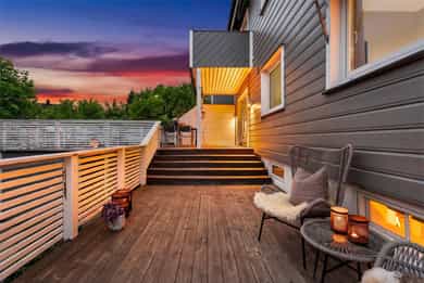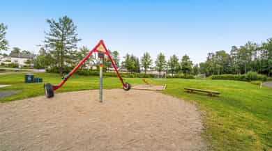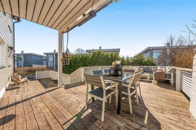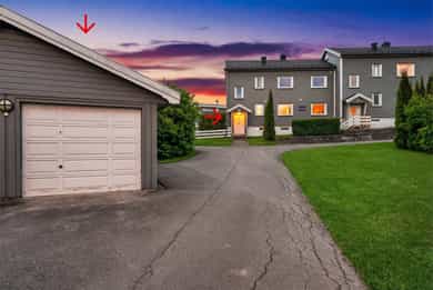 Stor 4-roms over 2 plan med solrik og usjenert terrasse. 2 bad + badstu. Meget barnevennlig og hyggelig nabolag! Garasje