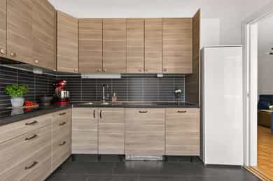 Integrerte hvitevarer medfølger. Kjøleskap medfølger også.