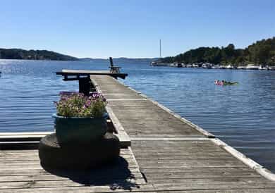 Velkommen til Nystrandvegen 136! - Villa Strandly - Sveitservilla med en av områdets største tomter. 20 m strandlinje - Innholdsrik enebolig med brygge og strand - Flott utsikt til Eidangerfjorden - Sjøbod ved bryggen - Lysthus i hagen - Uthus innredet med spisebord - Mesteparten av tomten er naturtomt med blåveis, hvitveis, konvall og fiol - Solrike og store uteplasser - Tomt på 3,8 mål - Seks soverom - To bad - Stort loft med gode lagringsmuligheter - Gode parkeringsmuligheter i gårdsplass, samt tre garasjeplasser - Gangavstand til barnehage, skole og idrettsanlegg - Kort vei til Olavsberget med badeplass og restaurant Velkommen til en hyggelig visning!