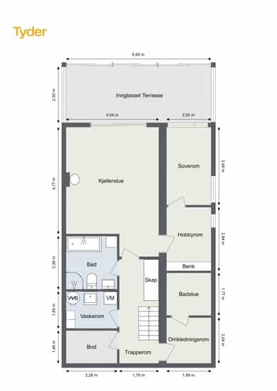 Totalt BRA: 77 kvm