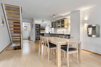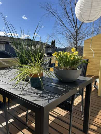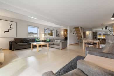 Inga Bjørnsons vei 85 ligger sentralt til på Vestli, et område kjent for sitt rolige bomiljø og gode naboskap. Her dominerer rekkehusbebyggelse, noe som gir et trygt og oversiktlig nærmiljø med lite støy og mange barnefamilier. Området har et lavt støynivå og et aktivt lokalsamfunn, hvor både små og store trives i grønne omgivelser. Rekkehuset ligger i et lite boligsameie i skogkanten. Mulighetene for friluftsliv er store for små og store. En lysløype ligger 10 minutters gange fra leiligheten. Fra enden av lysløypa er det lett tilgang til Lillomarka. Om vinteren kan du ta på deg skiene rett utenfor inngangsdøra til leiligheten. Til det populære serveringsstedet Liastua er det 15 minutters gange. Ved Liastua er det balanseløype for de minste, grillplasser, utendørs styrkeapparater som er tilgjengelig hele året og den kjente sherpatrappa som fører deg opp til to gapahuker. Den lokale slalombakken Liabakken er gratis for alle og går fra Liastua og ned til ungdomsskolen. Området har ellers kunstgressbane, ridesenter, flerbrukshall og 9 hulls golfbane, alt i gangavstand fra leiligheten. Fra i sommer åpner et nye badeland nær Stovner senter. Hverdagen blir enkel med kort vei til både barnehager og skoler. Vestlisvingen, Stovnerbakken og Vestlikollen barnehager ligger alle i gangavstand, og det er flere grunnskoler og videregående skoler i nærområdet. Dette gir gode valgmuligheter for familier med barn i alle aldre. I tillegg er det et rikt fritidstilbud, med Jesperudjordet som et sentralt samlingspunkt for lek, idrett og sosiale aktiviteter året rundt. Det er gode kollektivforbindelser med både buss og T-bane, som gir enkel tilgang til Oslo sentrum og resten av byen. Med kort vei til Vestli T-banestasjon (ca. 7 min gange) og flere bussforbindelser, er det lett å komme seg til både jobb og fritidsaktiviteter. Oslo S nås på under en halvtime, og Oslo Lufthavn Gardermoen er kun en kort kjøretur unna. I nærområdet finner du alt du trenger i hverdagen, med dagligvarebutikker som Coop Extra Vestli og Meny Stovner, samt Stovner Senter med apotek, bibliotek og et bredt servicetilbud. Stovner Frivilligsentral og Stovner Velhus bidrar til et inkluderende nærmiljø med aktiviteter for alle aldre. Området har også et høyt opplevd trygghetsnivå, og det er spesielt godt tilrettelagt for familier, husdyreiere og etablerere som ønsker et aktivt og sosialt bomiljø.
