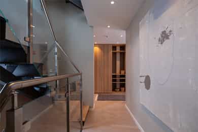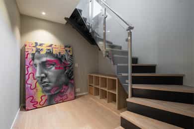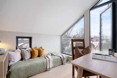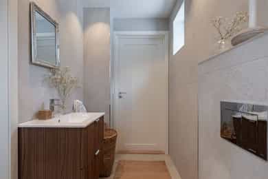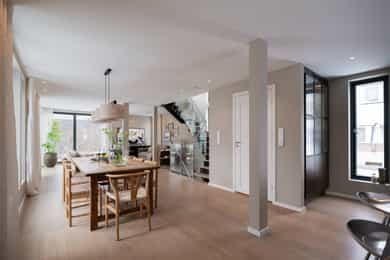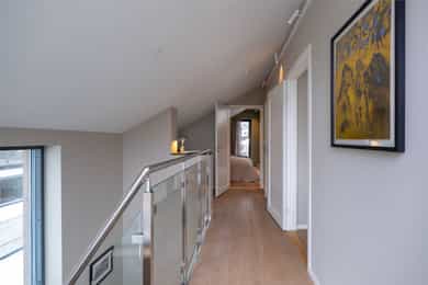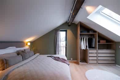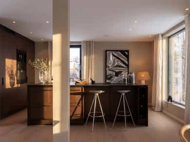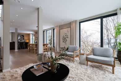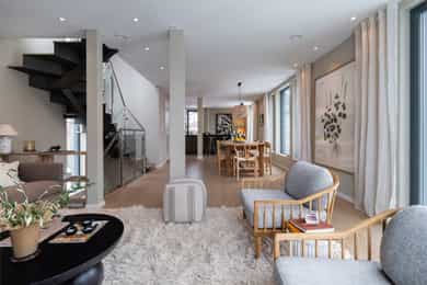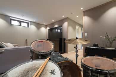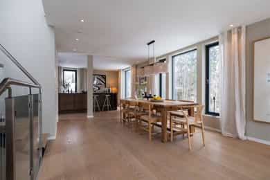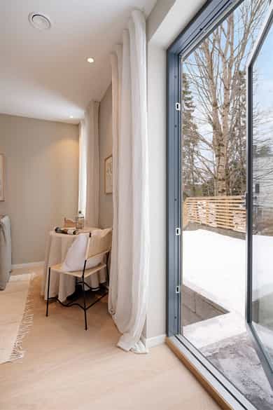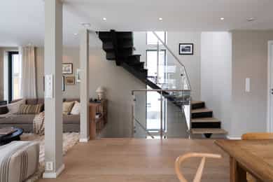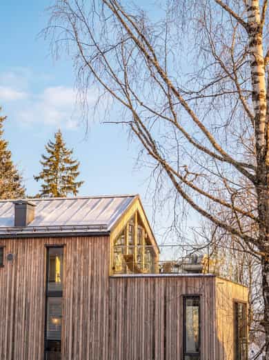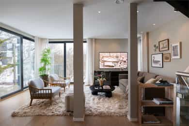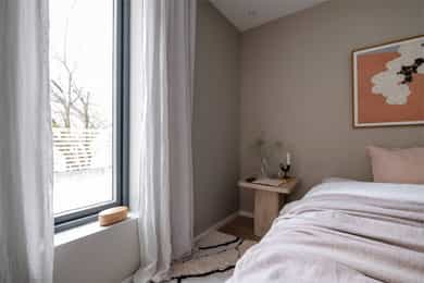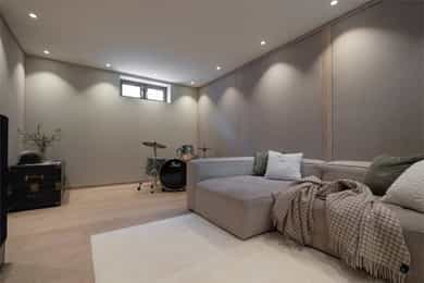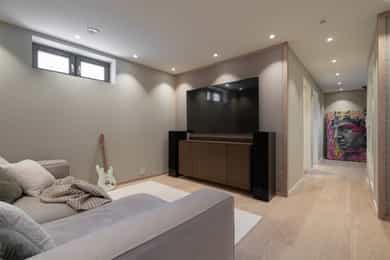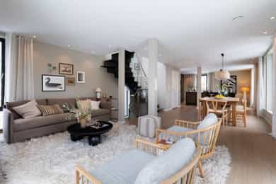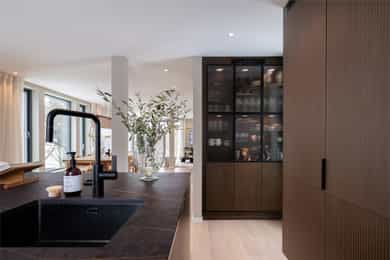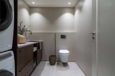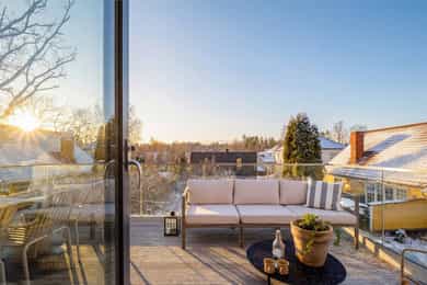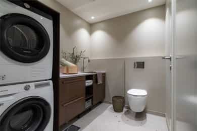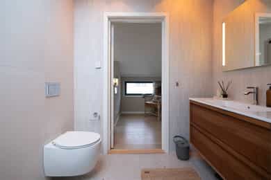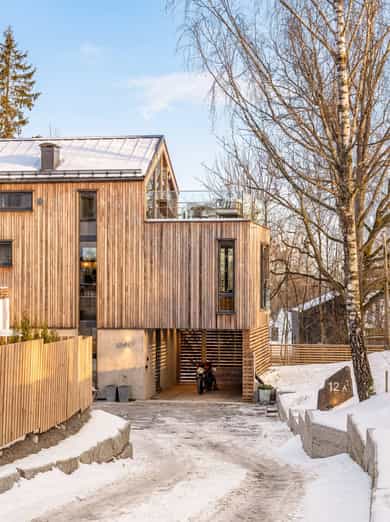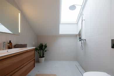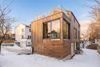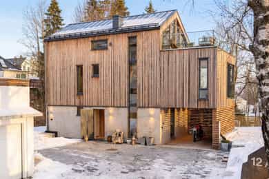 Boligen er arkitekttegnet og holder en gjennomgående høy standard. Planløsningen er nøye gjennomarbeidet og gir en luftig og romslig opplevelse i alle etasjer, med effektiv arealutnyttelse, gode siktlinjer og rikelig naturlig lys, samtidig som privatlivet ivaretas med lite innsyn. Materialvalgene er bevisste og gjennomført, med blant annet vedlikeholdsfri Kebony-kledning utvendig og kvalitets eike-parkett og fliser innvendig, som gir et moderne og tidløst uttrykk. Kjeller Kjelleren strekker seg over et funksjonelt plan og inneholder teknisk rom, gang, bad/vaskerom samt en romslig kjellerstue. Teknisk rom er praktisk og effektivt utformet, med plass til varmtvannsbereder og fordelerskap. Rommet er tilrettelagt for boligens tekniske installasjoner og gir enkel tilgang for vedlikehold. Gang gir enkel adkomst til kjellerens øvrige rom. Bad/vaskerom er tidløst og funksjonelt, med opplegg for vaskemaskin og tørketrommel. Innredning fra Sigdal med benkeskap og glatte fronter, nedfelt kum og veggfestet toalett med innebygd sisterne. Rommet har fliser på betong, avtrekksventil i himling tilknyttet balansert ventilasjon, samt luftespalte under dør for god lufttilførsel. Det er Tapwell Armaturer på vaskerom, bad 1. etg, bad 3. etg og kjøkken 2 etasje. Kjellerstue/bod er romslig og innredet med akustikkdempede plater, ideelt for film, trening eller musikk. Rommet er ikke godkjent for varig opphold, men gir gode muligheter for fleksibel innredning og tilpasning etter behov. Bod 2 tilbyr praktiske lagringsmuligheter og god plass til oppbevaring. 1. etasje. Entré/gang: Innbydende entré med plass til stor garderobe. Her er det en naturlig flyt videre inn i boligen, samtidig som man har direkte adkomst til hagen, som skaper en åpen og luftig overgang mellom inne- og uterom. Soverom 1: Romslig soverom med egen kjøkkenkrok fra Sigdal og direkte adkomst til et praktisk bad. Rommet har egen inngang, noe som gir fleksible muligheter for bruk som hybel, gjesterom eller privat boareal. Her er det rikelig plass til både seng, sofa eller annet ønsket inventar. Soverom 2: Soverom 2 er også av god størrelse, og egner seg utmerket som barnerom, gjesterom eller kontor. Rommet har gode møbleringsmuligheter. Bad: Lekkert, flislagt bad med tidsriktige og holdbare overflater. Innredningen består av garderobeskap med glatte fronter, servant, dusj på gulv og veggfestet toalett med innebygd sisterne. Rommet er funksjonelt og elegant, med gjennomført design som matcher boligens øvrige kvaliteter. 2. etasje: Stue: Romslig stue med svært gode møbleringsmuligheter, som gir fleksibilitet til både sittegruppe og spiseplass. Parkettgulv gir et tidløst og eksklusivt preg, mens store vindusflater slipper inn rikelig med naturlig lys og skaper en luftig og innbydende atmosfære. Her kan du enkelt innrede etter egne ønsker og behov. Himlingshøyde målt til 2,39 m. Stuen har fransk balkong som tilfører ekstra sjarm og lys. Kjøkken: Lekkert og påkostet Sigdal-kjøkken fra 2023 med romslig utforming og en praktisk kjøkkenøy som skaper en naturlig overgang mellom stue og kjøkken. Integrerte hvitevarer inkluderer induksjonstopp, stekeovn, oppvaskmaskin, kaffemaskin og kjøl/frys. Kjøkkenet har automatisk vannstopper og komfyrvakt. Innredningen har glatte fronter, belysning i skapene og benkeplate med nedfelt kum. Ventilator med avtrekk gjennom yttervegg. Dette er et kjøkken av høy kvalitet med tidløs design og funksjonalitet. WC: Praktisk gjestetoalett med servant og veggfestet toalett med innebygd sisterne. WC i 2. etg har servant og armatur fra London Basin Company. Trapp: Trappen strekker seg gjennom alle etasjer og fungerer som et tydelig arkitektonisk midtpunkt i boligen. Den skaper en helhetlig romfølelse og binder etasjene naturlig sammen. Trappen er en plassbygd ståltrapp med eiketrinn og glassrekkverk, spesialdesignet for huset. 3. etasje: Gang: Gangområdet deler opp boligens øverste etasje på en praktisk og oversiktlig måte, og knytter rommene sammen med en naturlig og luftig flyt. Rommet gir god plass til oppbevaring og dekorative elementer, samtidig som det skaper en harmonisk overgang mellom soverommene og badet. Bad: Lekkert, flislagt bad med takvindu i dusjen som tilfører naturlig lys og skaper en unik romfølelse. Her får du følelsen av å dusje med frisk luft og dagslys. Rommet har flislagte overflater kombinert med sparklet og malte plater. Innredningen består av benkeskap med glatte fronter, speil over servant, dusj på gulv, servant og veggfestet toalett med innebygd sisterne. Soverom 3 / Hovedsoverom: Lunt og romslig hovedsoverom med store vindusflater som slipper inn rikelig med naturlig lys. Rommet har god plass til dobbeltseng med tilhørende nattbord, og praktisk garderobeskap som gir rikelig med oppbevaringsmuligheter. Dette er et rolig og komfortabelt rom som innbyr til avslapning. Soverom 4: Soverom 4 er også romslig og lett å møblere etter behov, enten som barnerom, gjesterom eller kontor. Store vindusflater slipper inn rikelig med dagslys og gir rommet en åpen og luftig følelse. Takterrasse: Takterrassen utgjør et privat og stemningsfullt uterom med gode solforhold og skjermede omgivelser. Her er det rikelig med plass til både sittegrupper og spisebord, noe som gjør terrassen perfekt for hyggelige sammenkomster, sosiale anledninger og lange middager under åpen himmel. Takterrassen fungerer som et naturlig samlingspunkt som forlenger boligens oppholdsarealer og skaper en unik mulighet til å nyte utendørslivet i sommerhalvåret. Tekniske installasjoner: - To varmtvannsberedere, ca. 264 og 107 liter, av nyere dato. Plassert i teknisk rom i kjeller. - Avløpsrør i plast. Ledningsnett for vann i rør i rør systemer med fordelerskap i teknisk rom og wc. Tilførsel av vann til installasjoner ligger skjult i konstruksjonen. Hovedstoppekran er lokalisert i fordelerskap i teknisk rom. Automatisk vannstopper er montert i wc og kjøkken. Stakeluke er lokali