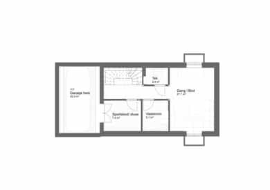 BRA-i: 59 kvm. Vaskerom, gang, to boder, teknisk rom og garasjerom