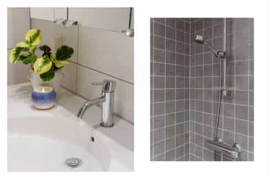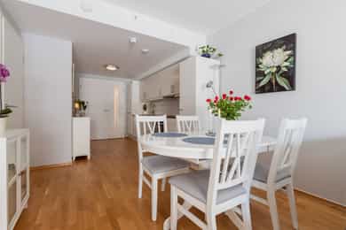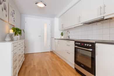 Leilighetens innvendige overflater består av parkett på gulv. Malt strie på vegg og slette malte flater i tak. Leilighetens innvendige dører er av type slette malte dører Kjøkken Pent kjøkken i åpen løsning med stue. Kjøkkeninnredning med slette malte fronter, laminat benkeplate, stål oppvaskkum og frittstående hvitevarer. Det er mekanisk ventilator over kokesone. Det er komfyrvakt over kokesone. Automatisk vannstopp i benkeskap Stue: Lys og fin stue med god plass. Åpen løsning mot kjøkken. Stuen har parkett på gulv, malte flater på vegger og malte flater i himling. Utgang til solrik balkong på hjørne mot vest. Bad Fint, romslig bad med tilkomst fra gang kjøkken. I rommet er det vaskeservant i innredning, veggmontert wc og dusjnisje med glassdører. Rommet er ventilert med mekanisk ventilasjon. Rommets innvendige overflater består av fliser på gulv og vegg, og plater i tak. Det er opplegg for vaskemaskin i rommet. Soverom: Leiligheten har ett soverom med god plass. Parkett på gulv, malte flater på vegger og malte flater i himling. Bod /walk-in inn fra soverom. TEKNISKE INSTALLASJONER Gå til side Leiligheten har vann og avløpsrør i plast. Leiligheten er ventilert med balansert ventilasjonsanlegg. I leiligheten er det en 200 L VV bereder. Det er vannbåren varme i leiligheten. Leiligheten har skjult elektrisk anlegg. Sikringsskap med automatsikringer plassert i gang.