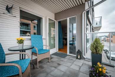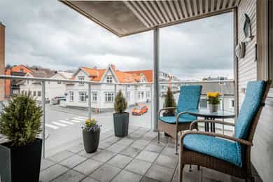Pen 2-roms leilighet fra 2016. Sentralt i sentrum. Solrik balkong. Garasjeplass. Heis. Ingen forkjøpsrett.