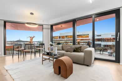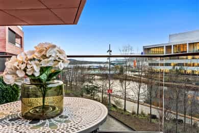 Fantastisk 3-roms selveier med frontline utsikt mot fjorden | Store vindusflater og solrik balkong på 8 kvm