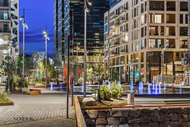 Bjørvika er på kort tid blitt rikskjent for sin unike arkitektur her til lands, og ikke minst også på grunn av den rivende byutviklingen som foregår langs sjøen. Fjordbyen er i ferd med å bli en helt unik bydel med enestående beliggenhet, sentralt plassert i byens nye kultursentrum, med kort vei til et omfangsrikt shoppingtilbud og nær kollektive transportmidler. Naboskapet til Operaen og det nye Munch-museet, gjør Bjørvika til et stort og viktig element i det nye byrommet langs fjorden. Nye Deichmanske Hovedbibliotek i Bjørvika er en arkitektonisk perle og et eldorado for store og små. Følger du kyststien er veien kort også til det nye Nasjonalmuseet på Vestbanen. Underveis passerer du Operaen som i seg selv er verdt gjentatte besøk, både på taket utendørs som innendørs til de mange forestillingene. Området har et bredt utvalg moderne kafeer, restauranter og butikker. Meny har nylig åpent en 1700 kvadratmeter stor matbutikk i Clemenskvartalet (Rostockgata 130), og her skal de satse på ferske råvarer, matglede og matkompetanse. Du vil blant annet finne slakterdisk, fiskedisk og ostedisk med stort utvalg av både klassikere og lokalmatprodusenter. Videre har Vinmonopol nylig åpnet en 500 kvadratmeter stor butikk i Clemenskvartalet, samt Apotek1 og restaurant Lut/Laget. Lutlaget (L/L) er åpent syv dager i uken, fra tidlig morgen til kveld. Her serveres deilig bakverk, bakt på stedet. L/L har også et brasseri, en vedfyrt pizzaovn, chambre separée og vinbaren Nosi. Kvartalet rommer også The Riot trenings- og behandlingssenter (åpner i august). Ellers finnes SATS og Barrys Bootcamp. Helt ytterst på Sørenga finner man Sjøbadet. Sjøbadet er et stort og åpent rekreasjonsområde med sitteplasser, stort basseng og eget barnebasseng. I midten av området finner man også sentralparken, områdets grønne lunge. I tillegg har man DNTS friluftshus mellom byggetrinn 6 og sjøbadet som tilbyr; innendørs trening, kajakk-kurs og utleie, klatrevegg innendørs og seminarer om frilufstliv etc. Det er kort vei til tur- og grønt områder og ikke minst øyene i Oslofjorden. Båtliv i Oslofjorden og rundt Sørengkaia om sommeren. Båtplasser finnes bl.a. på Hovedøya og på Ulvøya, begge i nærheten. Det er flere barnehager i Bjørvika og det er planlagt en barne- og ungdomsskole som etter planen skal stå klar i 2026. Ønsker du et avbrekk i grønnere omgivelser kan du velge mellom flere gode alternativer, eksempelvis en spasertur oppover langs Akerselva, et besøk i Tøyenparken og Botanisk Hage, eller legg turen innom Middelalderparken med vannspeilet som viser vannlinjen slik den var i tidligere tider. Med nesten umiddelbar nærhet til Oslo S med alle kollektive transportmidler, inkludert Flytoget til Gardermoen, er tilgjengeligheten svært enkel og praktisk. Holdeplass for bytrikk og buss like utenfor. Med egen bil tar du deg raskt ut på E18 og videre til E6 eller ringveiene.