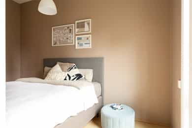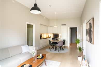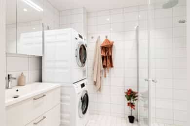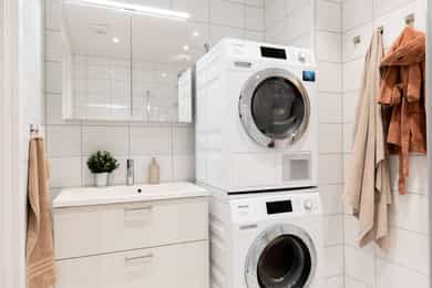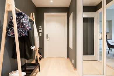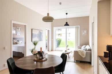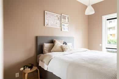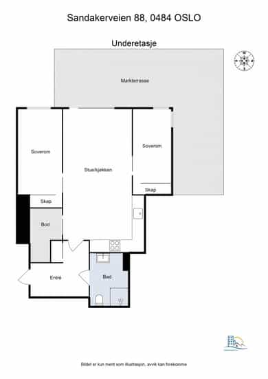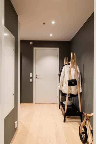 ENTRÉ: Velkommen inn! Leiligheten har en lys og åpen entré som skaper et umiddelbart godt førsteinntrykk. Interiøret i hele leiligheten er preget av lyse flater og flotte detaljer. Et perfekt utgangspunkt til å innrede med egne møbler og gjenstander for å skape sitt personlig preg. I entréen er det også gode oppbevaringsmuligheter i praktisk skyvedørsgarderobe! ROMSLIG OG LYS STUE: Lys og tiltalende stue, spiseplass og kjøkken i åpen løsning. Dette rommet fremstår som romslig og åpent med store vindusflater – alt dette er med på å skape et godt og sosialt oppholdsrom med flott atmosfære. Overflatene er malt i en lys tone og det er lagt flott en-stav parkett på gulv. Planløsningen åpner for flere møbleringsmuligheter med god plass til sofagruppe, spiseplass og tilhørende møbler. Takhøyde er målt til 3,09 meter og bidrar til en meget god romfølelse. Fra stuen er det utgang til en hyggelig vestvendt markterrasse på 26 kvm. I vår- og sommerhalvåret blir balkongen som en forlengelse av stuen og innbyr til mer samvær og fine stunder med familie og venner. Terrassen er romslig og kan naturlig deles inn i ulike soner med utemøbler, grill og beplantning. Den vestvendte retningen gir gode solforhold. ÅPEN KJØKKENLØSNING: Stilrent kjøkken med kjøkkeninnredning bestående av hvite, glatte fronter og benkeplate av kompositt/stein med nedfelt vask. Kjøkkenet er tilpasset på en god måte med rikelig skap- og benkeplass. Et utmerket sted for den kokkeglade. Videre er kjøkkenet utstyrt med platetopp, stekeovn, oppvaskmaskin og kjøl/fryseskap. Det er avtrekk over kokeplass. HOVEDSOVEROM: Hovedsoverommet er av svært god størrelse med god plass til dobbeltseng og tilhørende møbler. Rommet er malt i en delikat beigetone som skaper et lunt utrykk. Videre er rommet innredet med en romslig garderobeskap med speilfronter som gir rikelig med oppbevaringsplass. BOLIGENS ANDRE SOVEROM: Boligens øvrige soverom er også av god størrelse med plass til seng og garderobe. Rommene passer ypperlig som barnerom, gjesterom eller hjemmekontor. Alt etter ønske og behov! BADEROM: Pent, flislagt baderom med vannbåren gulvvarme. Det er flis på vegger og gulv, og himling med innfelt downlights. Badet er innredet med vegghengt klosett, servant nedfelt i innredning, speilskap m/lys og dusjhjørne med svingbare glassdører. Videre er det opplegg for vaskemaskin. Balansert ventilasjon. ØVRIG OPPBEVARINGSMULIGHETER: Leiligheten har en egen innvendig bod! Her er det gode oppbevaringsmuligheter. Videre medfølger det en kjellerbod på ca. 5 m². ØVRIG INFORMASJON: Dører: Lyd- og brannklassifisert entrédør. Balkongskyvedør med 3-lags press glass, prod. 2019. Vinduer: Vinduer med 3-lags press glass, prod. 2019. Ventilasjon: Balansert ventilasjon m/varmegjenvinning. Elektrisk anlegg: Automatsikringer. Oppvarming: Boligen varmes opp av vannbåren gulvvarme, unntatt bod.