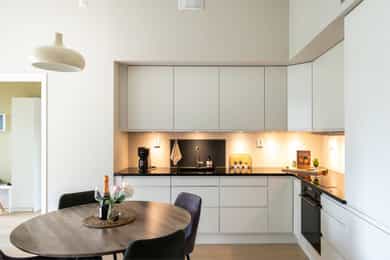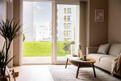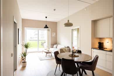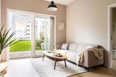 Moderne 3-R hjørneleilighet m/solrik vestvendt markterrasse på 26m² I 3,1 m takhøyde I Bygg fra 2020 I "Alt" inkl. i fk