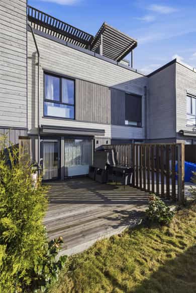 Velkommen til Kåre B. Werners gate 47!-Et moderne og familievennlig rekkehus over 3 etasjer, oppført i 2020. Boligen har BRA-i på 118 kvm og en gjennomgående god standard fra byggeår. Her får du en praktisk planløsning med entré, lys stue, stilrent kjøkken, 3 soverom, baderom, gjestetoalett, boder og en ekstra stue i toppetasjen. Fra stuen i 1. etasje er det utgang til en sydvendt terrasse på ca. 17 kvm, mens øverste plan byr på en solrik takterrasse på ca. 9 kvm. I tillegg disponerer boligen terrasse ved inngangssiden, sportsbod og garasjeplass i felles garasjeanlegg. Fjernvarme, balansert ventilasjon og et rolig, familievennlig bomiljø gjør dette til en bolig som kombinerer komfort, funksjonalitet og gode uteplasser. Velkommen til visning - Husk å melde deg på!