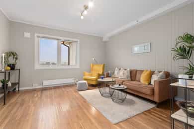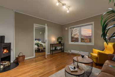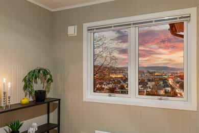 Sentral og stor selveierleilighet i påkostet sameie - Ingen fellesgjeld- Peis - P-plass - Utsikt - Pendlervennlig