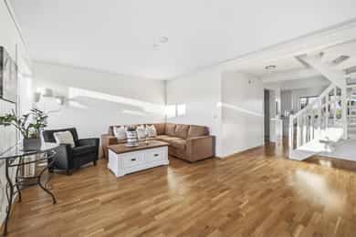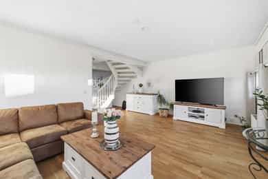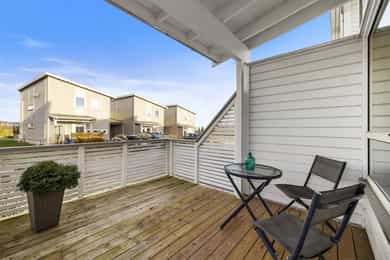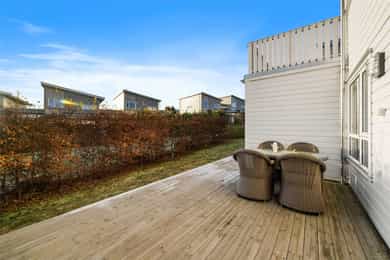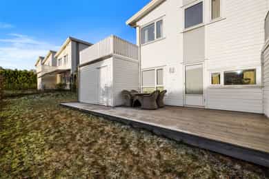 Borre: Nyere enebolig i rekke med carport, 3 soverom, loftstue og solrike uteplasser!