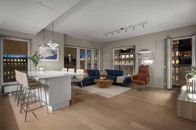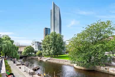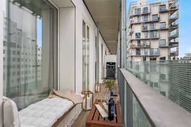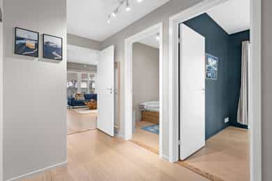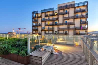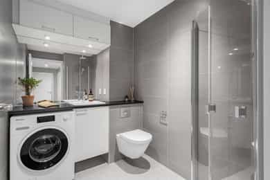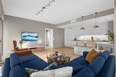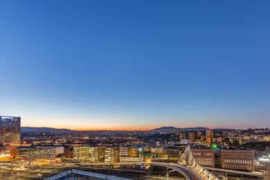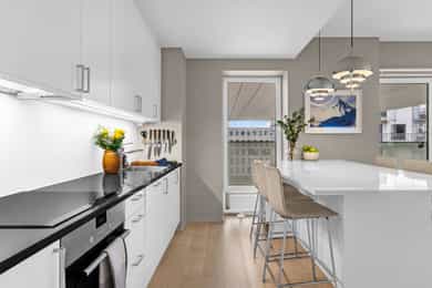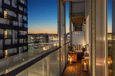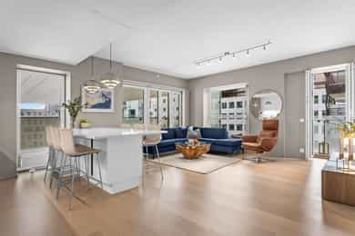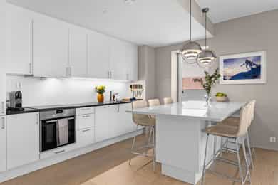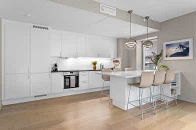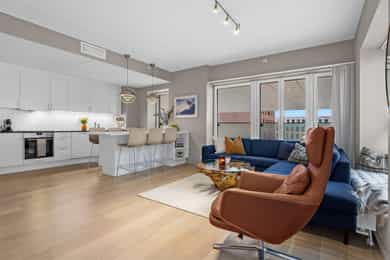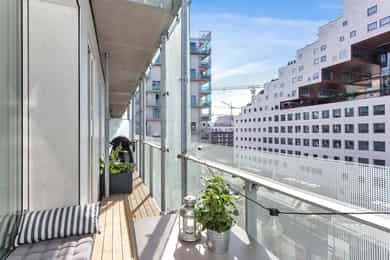 Velkommen til Trelastgata 27 - en moderne og lys 3-roms frontleilighet beliggende i det karakteristiske bygget Cliffhanger. Boligen har en god planløsning med entré, åpen stue- og kjøkkenløsning, to soverom, bad, omkledningsrom og balkong med utgang fra både stue og hovedsoverom. Leiligheten har gjennomgående enstavs eikeparkett og gode lysforhold. Høydepunkter: - Balkong på ca. 8 m² med sol fra ca. kl. 15-19 om sommeren - Felles takterrasse med rå utsikt, beplantning, solsenger og benker. Sol fra morgen til kveld - Sol på balkongen fra ca. kl. 15–19 på høysommeren - Mulighet for kjøp av selgers garasjeplass - Sigdal kjøkken med integrerte hvitevarer - Kjøkkenøy med integrert skap, bokhylle og vinskap - Balansert ventilasjon - Felles sykkelrom og treningsrom - Heis