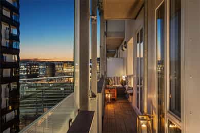 Selger informerer om sol fra 15-19 på balkongen på høysommeren.