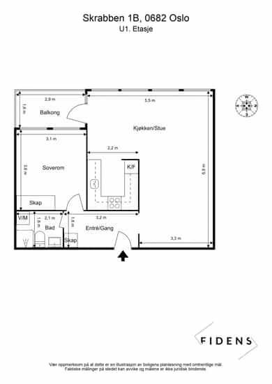 Totalt BRA: 55 kvm