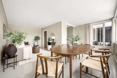 Det opplyses om at leiligheten ikke vil bli ytterlige utvasket. Det er gjort flyttevask i forkant av visning. Styreleder opplyser om at det skal legges nytt tak i sameiet i år (kostnad på ca. 2.000.000,-) samt nye trapper (kostnad på ca. 500.000,-). Dette skal betales av oppsparte midler. I tillegg har de diskutert å ta badene i 2028. Det er ikke bestemt hvilken fremgangsmåte som skal benyttes for rehabilitering av bad. Det må bli eget forprosjekt. Det opplyses om at ingen kan eie mer enn to boligseksjoner i sameiet, jf. eierseksjonsloven § 23. Seksjoner som eies av nærstående eller via firma teller med. Etter lov om eierseksjoner § 31, er sameierne overfor sameiets kreditorer ansvarlige etter sin sameiebrøk. Ved manglende betaling av fellesutgifter har sameiet legalpanterett i den enkelte eierseksjon på inntil 2 ganger folketrygdens grunnbeløp. Kjøper og selger er forpliktet til å undertegne standard kjøpekontrakt utarbeidet av Nordvik i forbindelse med eiendomstransaksjonen. Kjøpekontrakt kan besiktiges hos eiendomsmegler før bud inngis. Kontakt eiendomsmegler for spørsmål. Selger leverer eiendommen i ryddig og rengjort stand.